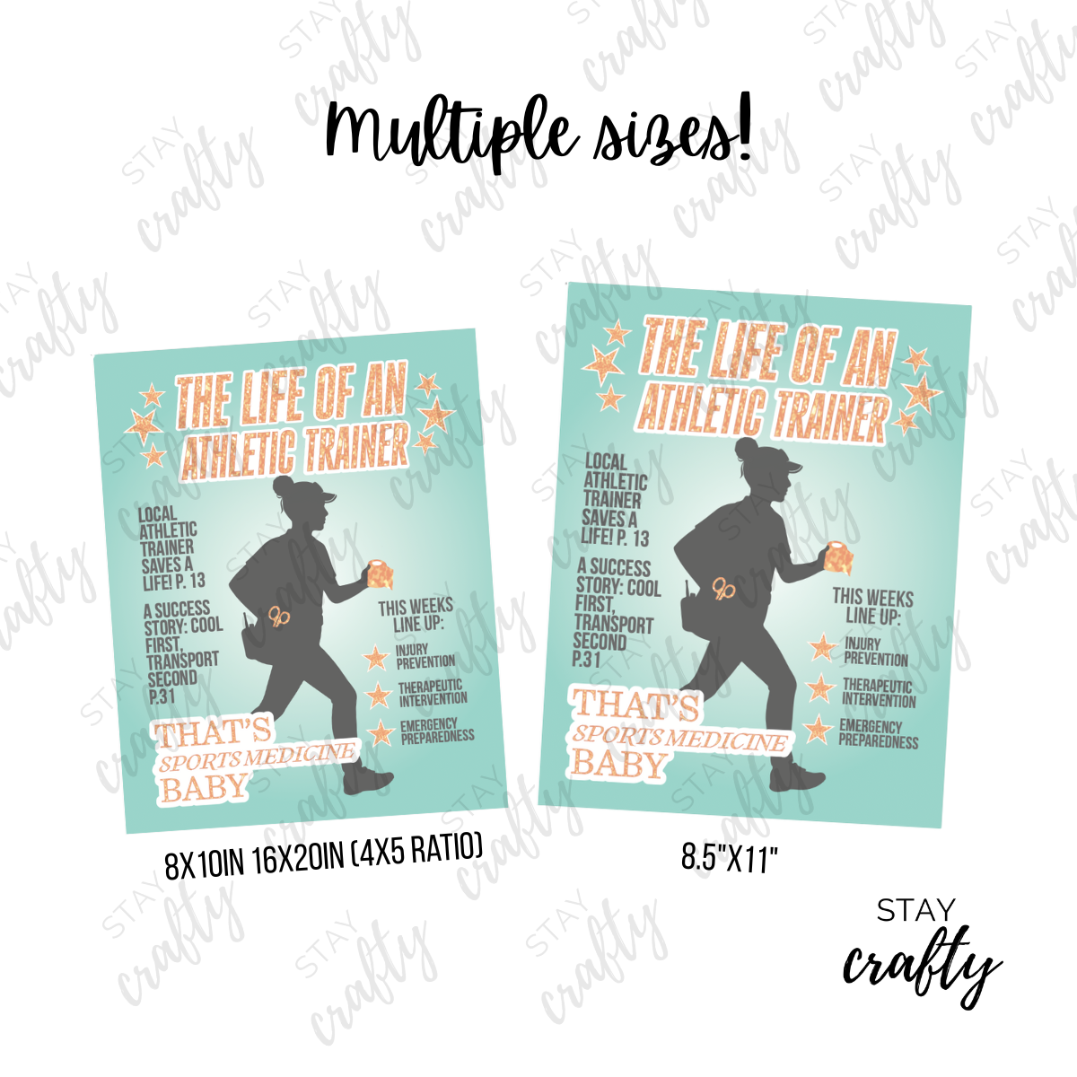 Disclaimer: The content of all digital products are my original artwork and are not meant to replace any existing logos or brands that represent any profession within the sports medicine community. Your purchase and use of my digital products do not establish a professional-working relationship between you and Stay Crafty, LLC.